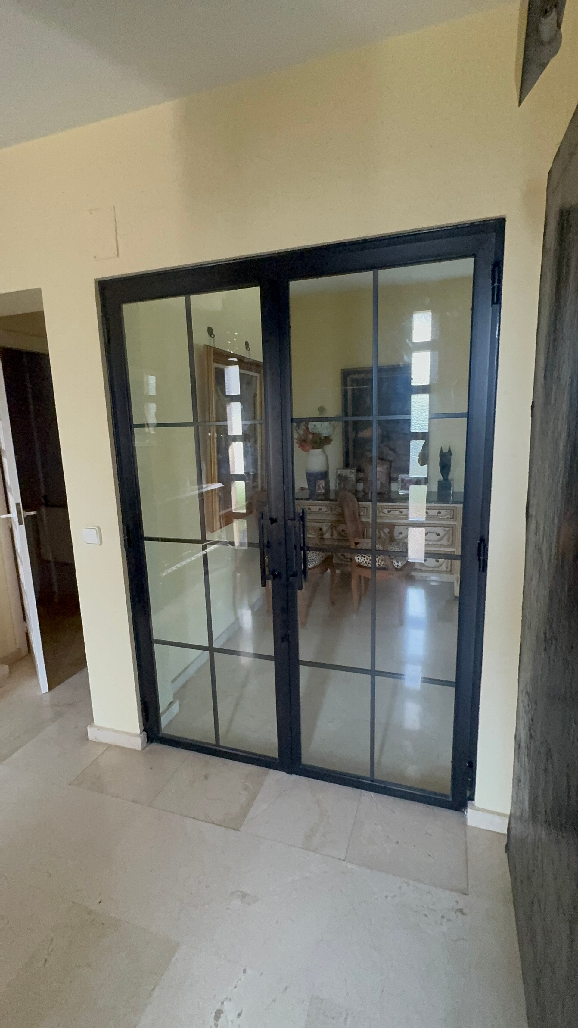 Otros trabajos complementarios: Toldos verticales, mosquiteras, cristales fijos, persianas, mamparas de ducha, puerta de garaje, puertas de hierro decorativa, paravientos extensibles o fijos, espejos personalizados... (Other complementary work: Vertical awnings, mosquito nets, fixed glass panels, blinds, shower screens, garage doors, decorative iron doors, extendable or fixed windbreaks, customised mirrors, etc. )